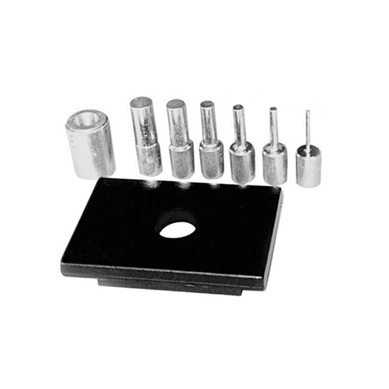 Набор комплектуется из 6-ти из пуансонов различного размера (5-10-14-18-24-29 мм.) и можно применять с металлами различной толщины. Все стержни отличаются высокой прочностью и способны выдерживать критическую нагрузку более 100 тонн.