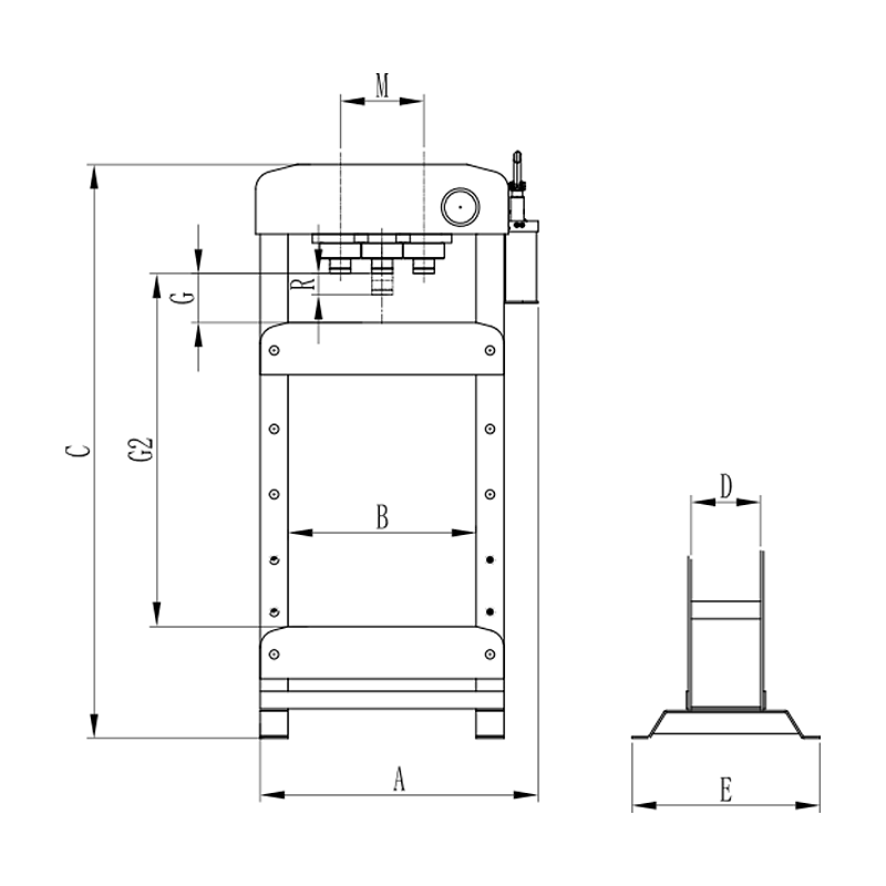 Мощная сварная рама из толстостенного листового металла, изготовленная с применением роботизированных технологий и лазерной резки, обеспечивает высочайшую прочность конструкции. Пресс позволяет оператору преобразовывать практически нулевое усилие в давление до 100 тонн. Это давление можно легко поддерживать и контролировать, наблюдая за встроенным манометром. Кроме удобного расположения на уровне глаз, манометр дополнительно защищен специальным уплотнением.