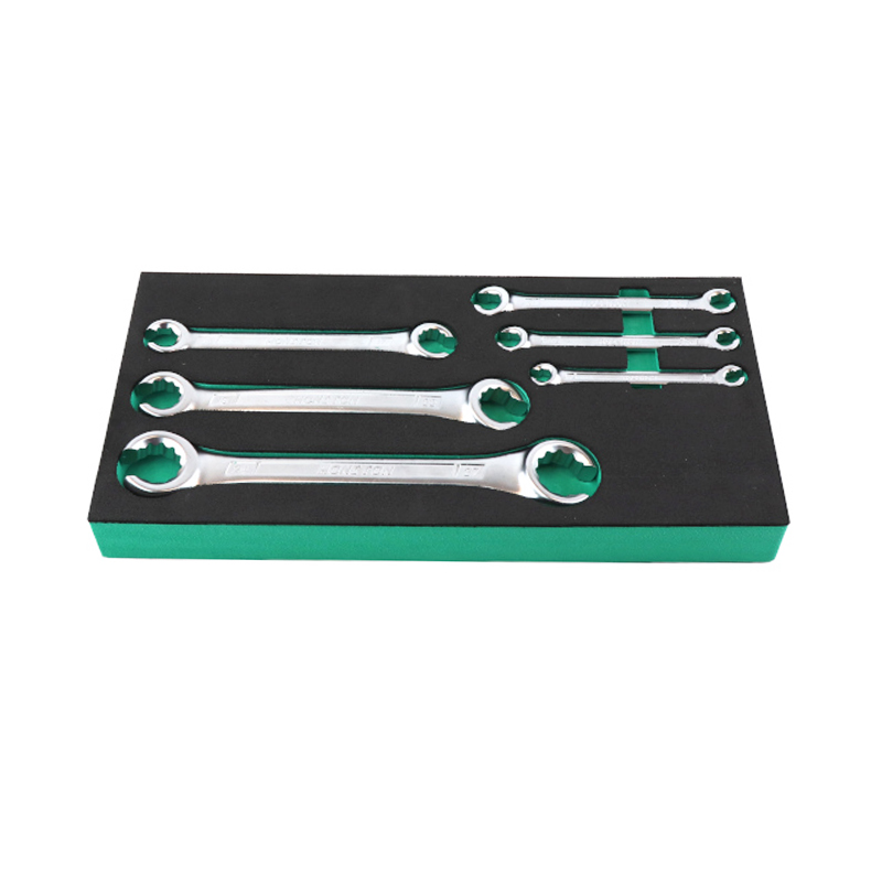 Набор из 6-и разрезных гаечных ключей HONITON. Размер: 8x9; 10x11; 12x13; 14x17; 19x22; 24x27 мм. Каждый ключ изготовлен из кованой закаленной хромванадиевой стали, полностью хромирован, что гарантирует высокую прочность и долгий срок службы без коррозии и деформации. Поставляется на специальном ложементе, устойчивом к агрессивным маслам и кислоте и удобном для упорядоченного хранения. Надежный и долговечный инструмент HONITON.