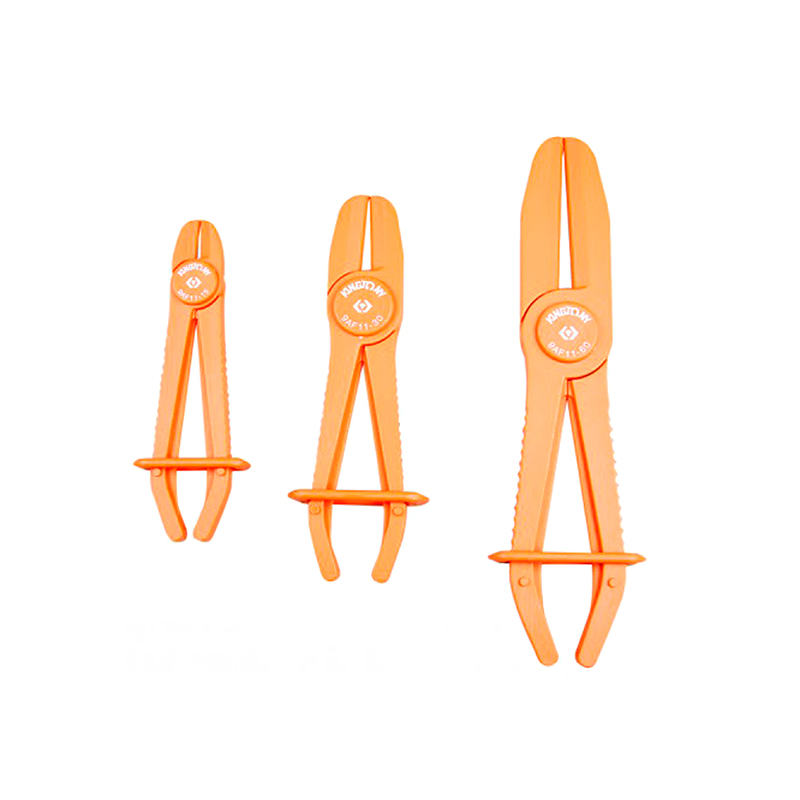 Набор зажимов для шлангов, 3 размера - комплект пластиковых приспособлений различного диаметра. Рифления на рукоятках обеспечивают надежный захват без проскальзывания.