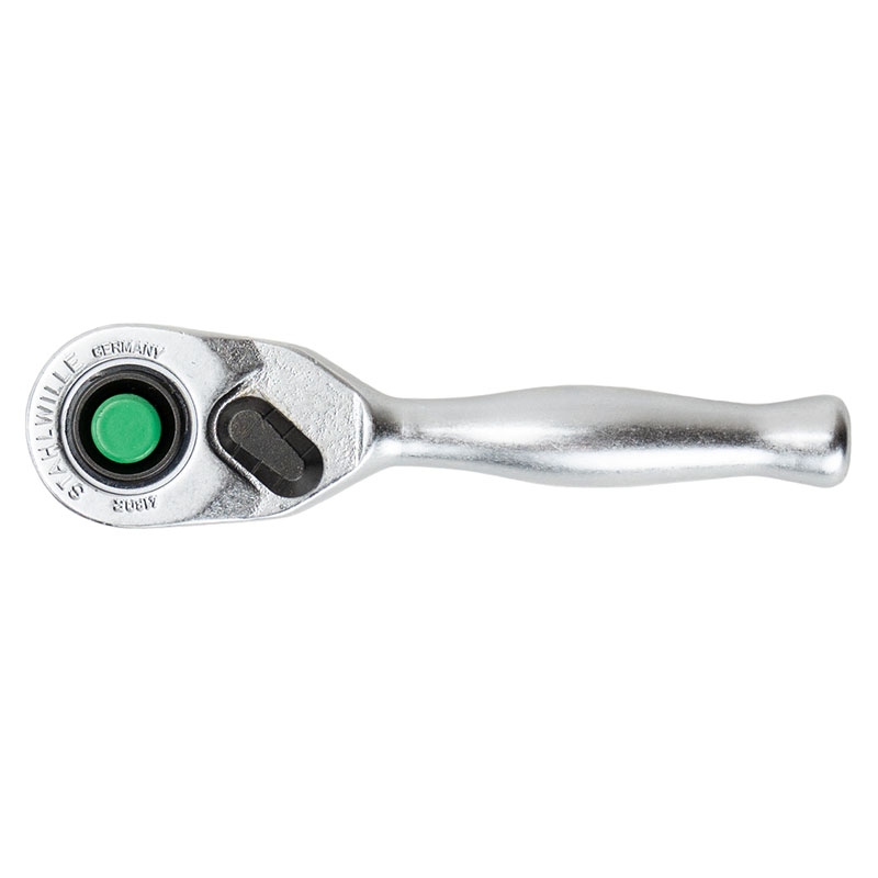 Профессиональная короткая трещотка с тонкими зубьями с быстросъемным фиксатором QuickRelease STAHLWILLE 418QR длиной 90 мм и присоединительным квадратом 1/4 дюйма. 80 зубьев. Малый рабочий угол, составляющий всего лишь 4,5°, позволяет эффективно работать в любом положении. Предотвращает повреждение посторонними предметами благодаря отказу от резьбовых соединений. Предохранитель QuickRelease исключает случайное падение инструмента и одновременно обеспечивает быструю замену. Изготовлена из высококачественной легированной хромом стали. Дополнительно хромирована для уверенной и долгой защиты от коррозии. Безопасна и удобна в обращении, позволяет работать без усталости.