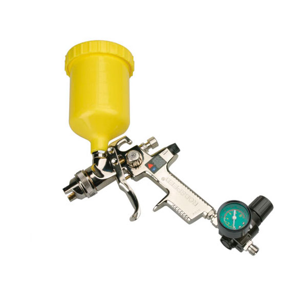 Пистолет «Rod-Speed» c регулятором HVLP включает насадку 1,3 мм и миниатюрный регулятор давления с манометром.