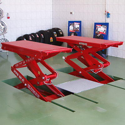 Очевидное достоинство одноплатформенного типа является его компактность. Они практически не занимают полезную площадь в боксах сервиса. Небольшие габариты обусловлены тем, что такие приспособления имеют всего один ножничный механизм расположенный посередине платформы. Конечно, такая конструкция не дает возможности работать с большим весом, и чаще всего они бывают вспомогательные, подкатные, для выполнения сопутствующих задач.
