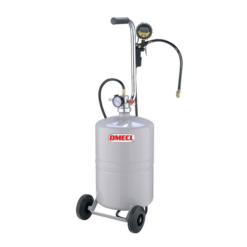 Оснащён пистолетом для накачивания шин и двумя манометрами (давления в баке и шине). Размеры устройства: 330х335х915 см.