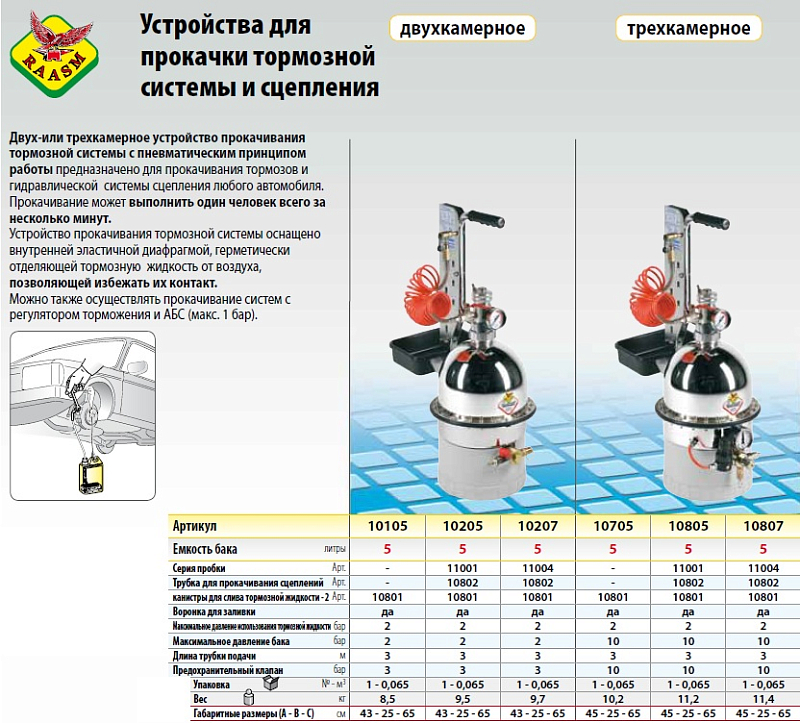 Трехкамерное устройство прокачивания тормозной системы с пневматическим принципом работы предназначено для прокачивания тормозов и гидравлической системы сцепления любого автомобиля.