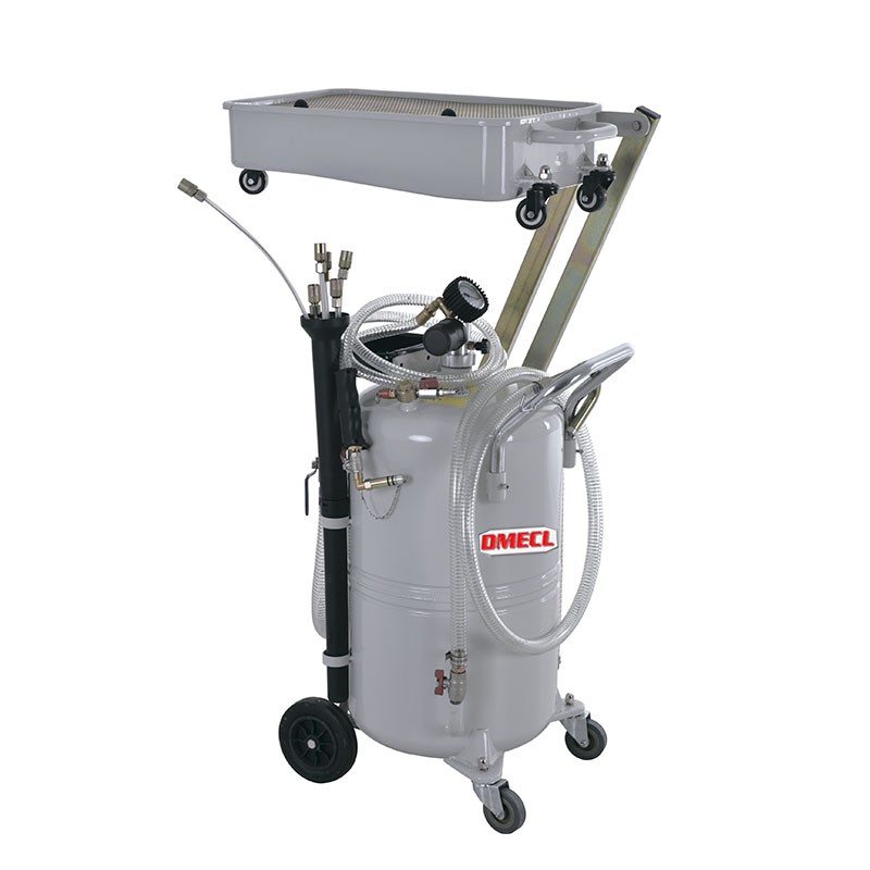Универсальная установка для слива и откачки антифриза ёмкостью бака 65 литров и подкатной ванной 14 л. на пантографе.