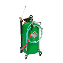 Установка для слива отработанного масла RAASM 42090/C1, предназначена для удаления самотеком моторного масла, масла коробки передач и дифференциала всех автомобилей установленных на подъемнике или яме. Установка представляет собой мобильное и простое устройство, состоящее из маслосборника 15 литров с регулируемой высотой, накопительного резервуара ёмкостью 90 литров, указателя уровня, сливного шланга длиной 2 метра с изогнутым металлическим наконечником, съемного лотка для инструмента.