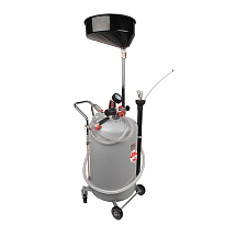 Пневматическая установка для откачки отработанного масла с прозрачной предкамерой RAASM 43091, предназначена для удаления моторного масла из любого транспортного средства. Установка представляет собой мобильное и простое в эксплуатации устройство, состоящее из накопительного резервуара ёмкостью 90 литров, набора щупов 6 шт (металлических и гибких), указателя уровня, манометра, всасывающего шланга длиной 2 метра, съемного лотка для инструмента, прозрачной предкамеры 8 литров. Прозрачная предкамера используется для быстрой и автономной откачки и позволяет контролировать количество и качество откаченного масла. Для создания вакуума в установке подаваемое давление должно быть в пределах от 6,5 до 7 бар. После создания вакуума, установка работает самостоятельно, нет необходимости в ее постоянном подключении к сети сжатого воздуха.